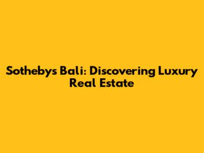 Sotheby's Bali: Luxury Real Estate