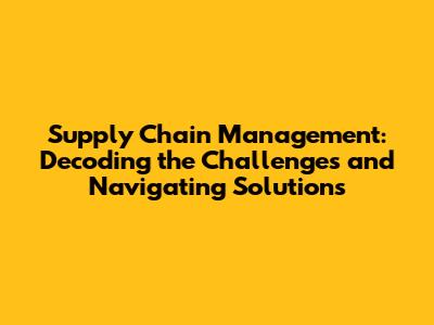 Solutions and Strategies: Conquering Supply Chain Management Challenges