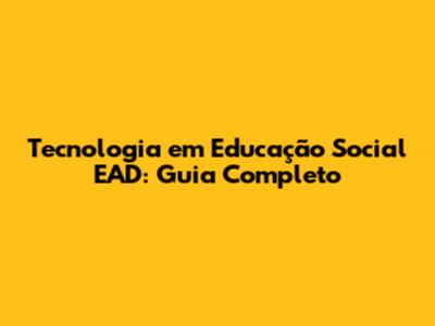 Tecnologia Em Educação Social EAD: Guia Completo