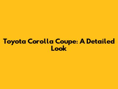 Toyota Corolla Coupe: History, Models, And Availability