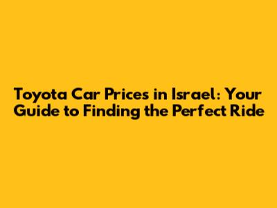 Toyota Prices In Israel: Find Your New Car Today