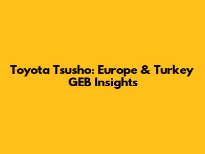 Toyota Tsusho: Europe & Turkey GEB Insights