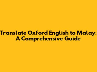 Translate Oxford English To Malay: A Comprehensive Guide