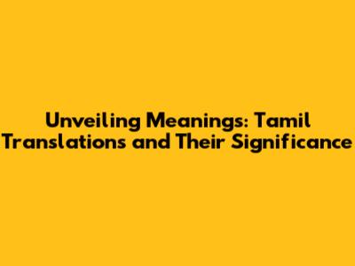 Unveiling Meanings: Tamil Translations And Their Significance
