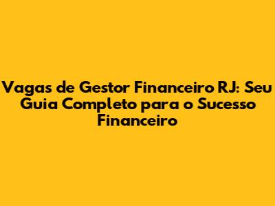 Vagas De Gestor Financeiro No Rio De Janeiro: Guia Completo