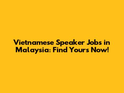 Vietnamese Speaker Jobs In Malaysia: Find Yours Now!