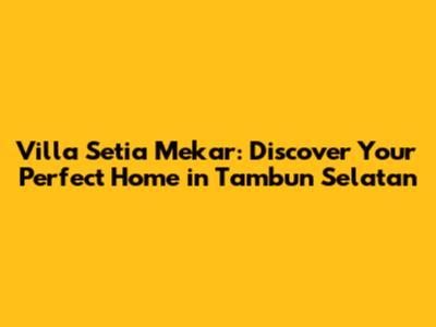 Hey guys, are you on the hunt for the perfect home in the Tambun Selatan area? Well, you might just be in luck! Today, we're diving deep into Villa Setia Mekar, a residential gem that's been catching the eye of many. We will explore all the ins and outs, from location and amenities to the overall vibe of the place. So, grab a coffee, get comfy, and let's unravel everything you need to know about Villa Setia Mekar. Trust me; by the end of this, you will have a clear idea if this is your dream home.