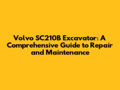 Volvo SC210B Excavator: Repair, Maintenance & Troubleshooting